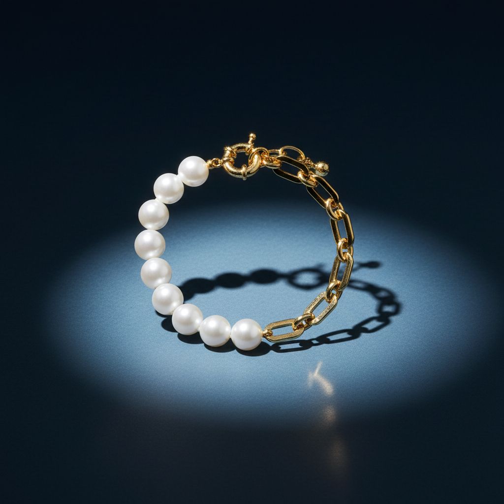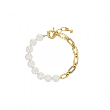 Bracelet en perles de Majorque et mailles en laiton doré