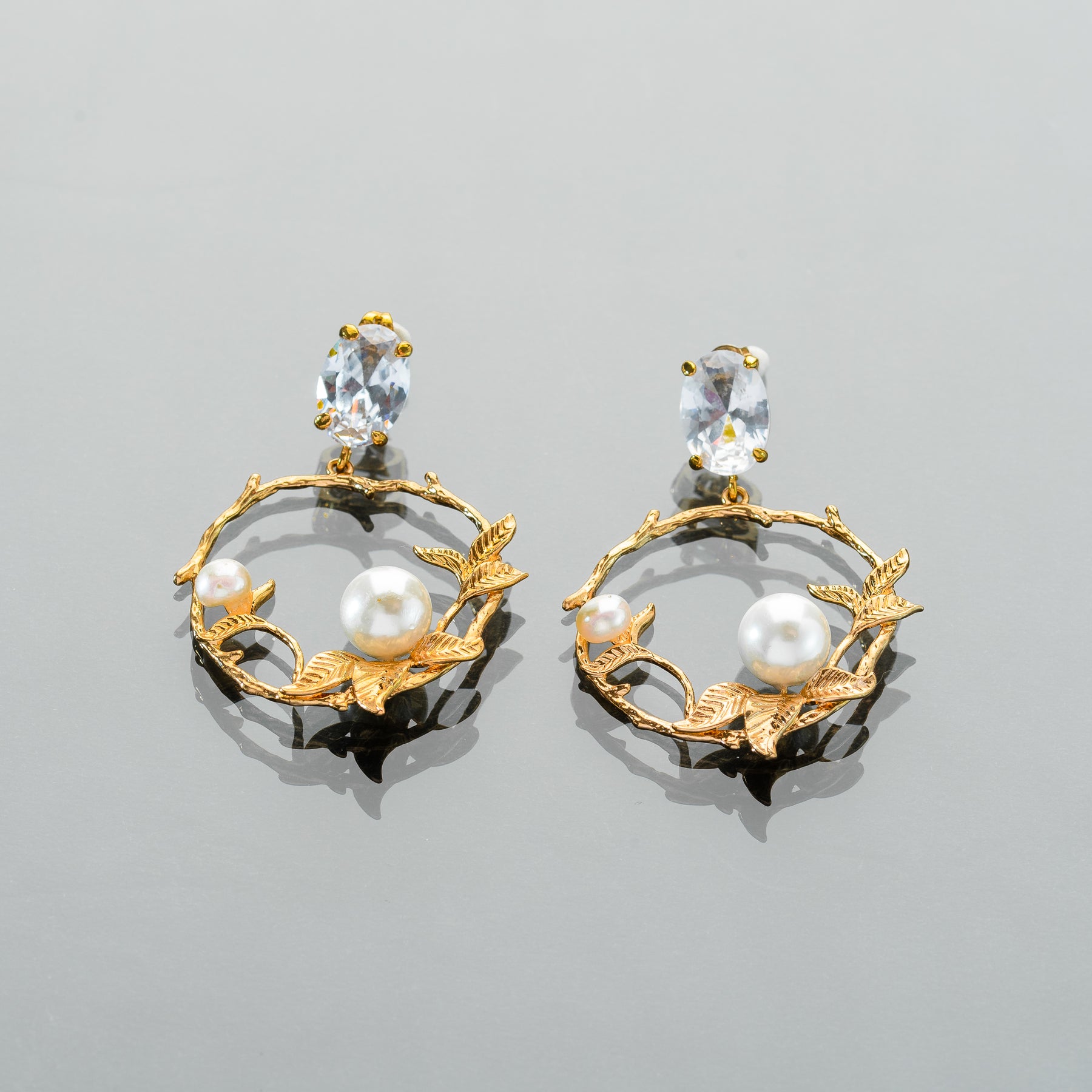 Boucles d'oreilles en plaqué Or 18 carats et perles d'eau